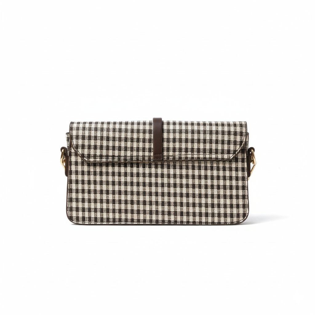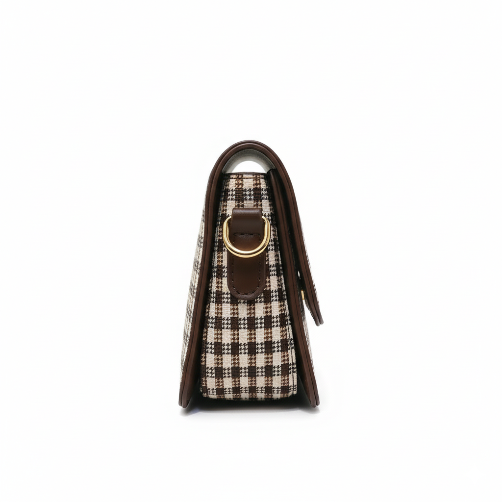 - Heritage Print: The body is crafted from a durable, high-quality woven fabric in a traditional cream-and-brown gingham check.