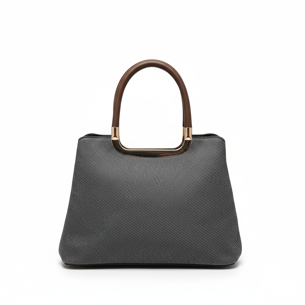 • Material: Textured Denim, Smooth Faux Leather, and Gold-finish Zinc Alloy
